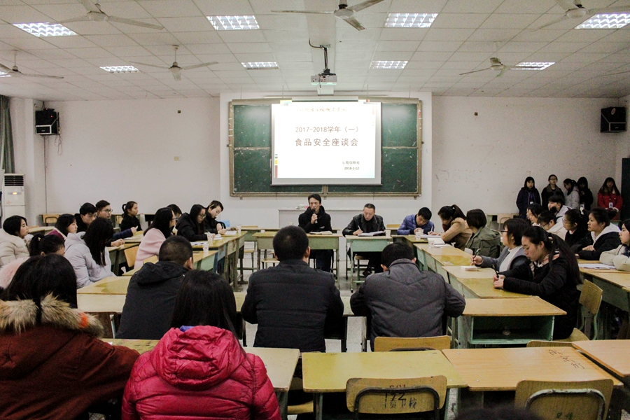 1月12日下午,学院2017-2018学年第一学期食品安全座谈会在A教315召开。座谈会由后勤保障处副处长、首席食品安全管理员张晓毅主持,辅导员代表、40余名学生代表、后勤保障处相关工作人员、食堂主要负责人参加了本次座谈会。