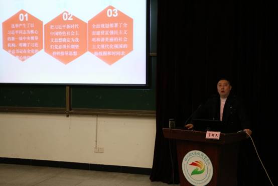 肖教授以《新时代新思想新征程新部署》为题,从十八大以来国家建设取得的巨大成就,对十九大报告中提出的“三个意味着”、社会主要矛盾的变化进行了解读,生动地讲述了国家飞速发展对衣食住行、教育科研、农业、工业等方面的巨大改变和影响;对十九大报告提出的“人民日益增长的美好生活需要和不平衡不充分的发展之间的矛盾”从科学依据、科学内涵、重大意义、应对之策等方面进行了阐释,让教职工开阔了视野,加深了对“新矛盾”的理解,充分认识和把握了我国社会发展的阶段性特征,提升了理论水平。