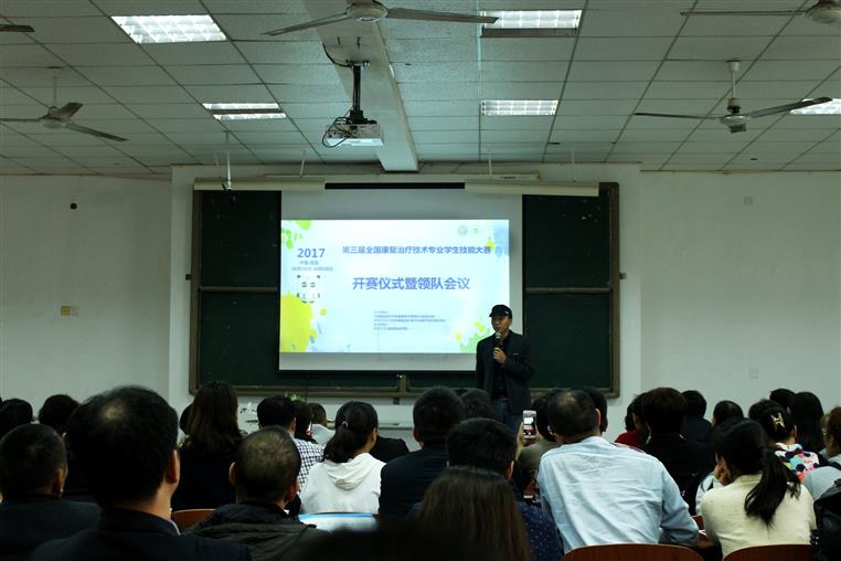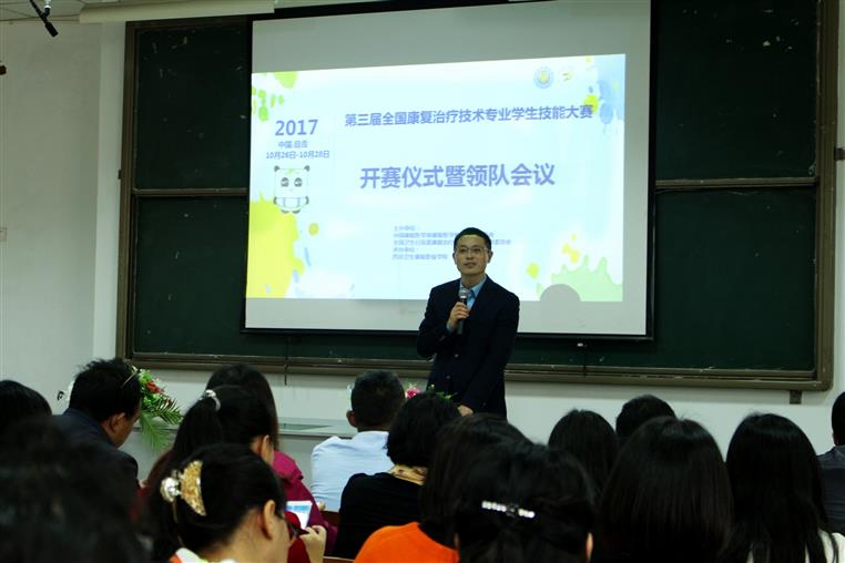 全国卫生行指委康复治疗类专业教学指导委员会主任委员乔学斌教授在开赛式做讲话