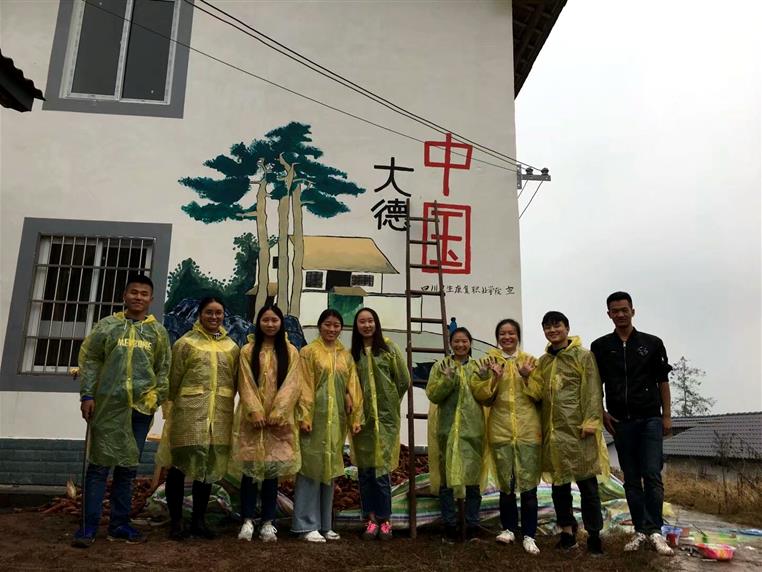 在黄昌平的协调下,学院团委组织学生书画社、宣传部的同学,利用周末时间为两村进行了外墙墙绘。