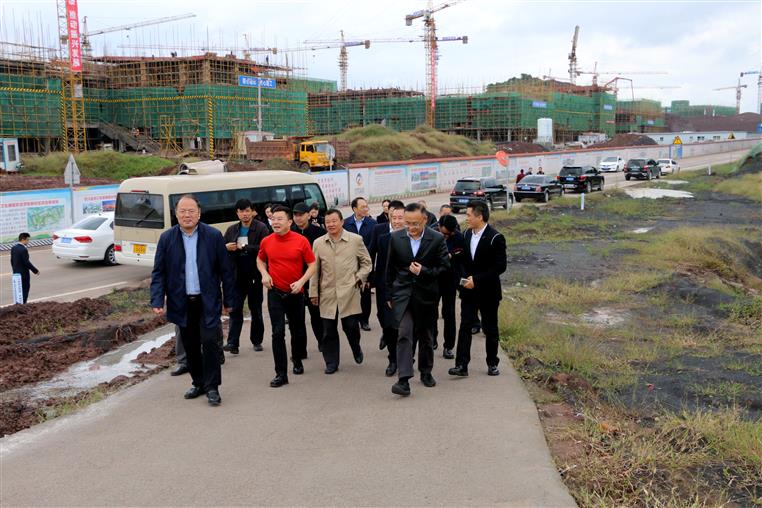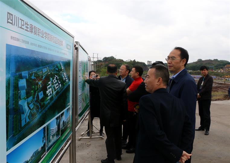 10月23日上午,四川金杯集团董事局主席金杯一行在市人大常委会主任谭豹、市人大常委会秘书长龚焕楷、市卫生计生委主任黄麟等领导带领下考察我院新校区综合体项目建设情况。