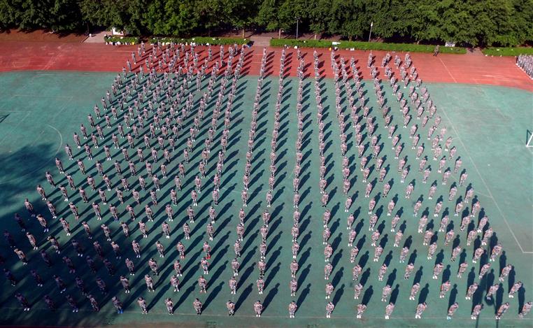 在军训汇报表演中,手语操《国家》《感恩的心》充分展示了新生们乐观向上、自信自强的精神,以及对国家、学校、父母的无限感激之情。