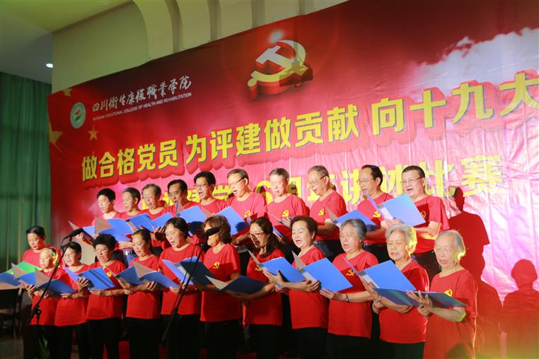 活动开场,全体党员同志齐唱国歌。学院退休党支部的党员们也饱含深情地朗诵了自己创作的诗歌《有一首歌》。