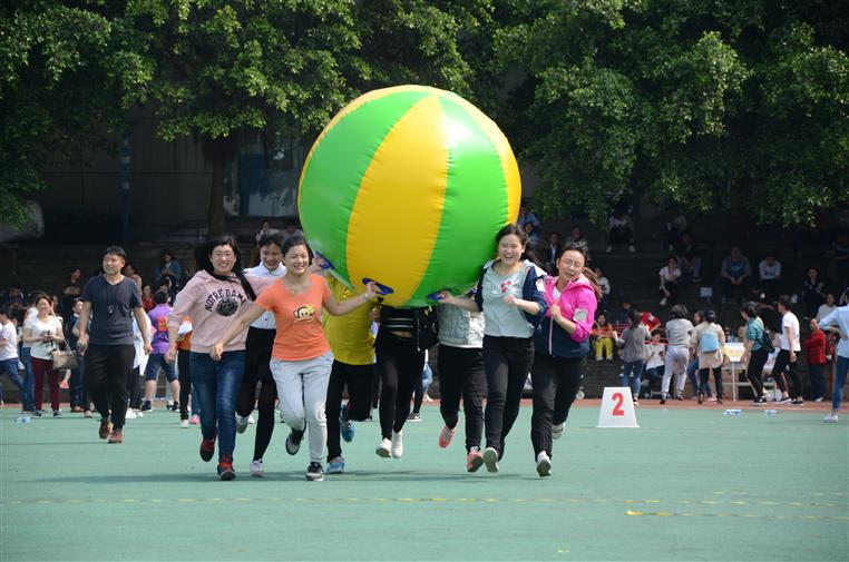 本次运动会比赛项目趣味性十足,主要体现在两个方面:一是各参赛队伍的名称及口号充满趣味性,10个工会片区都为自己取了活泼有趣的队伍名称和口号,如学工片区叫做“阳光队'',口号是“招之即来(招生),来之能管(学管),团团包围(团委),保君平安(保卫),衷心职守(中职),经济实用(实习),乐业心安(就业);''医技片区叫做“欣欣向荣队'',口号为“医技一出,谁与争锋,横扫赛场,为我称雄'';附属一医院工会叫做“亮剑队'',口号为“亮剑出击,勇争第一'';附属四医院工会叫做“超越队'',口号为“挑战自我,超越自我'';二是比赛项目花样多,趣味性强,涵盖了包括“毛毛虫竞速、运转乾坤、珠行万里、袋鼠跳、巨人脚步、击鼓颠球、背夹球''在内的七个项目。