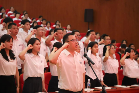 执教三十年教授申奎带领全体新教师进行教师宣誓仪式。