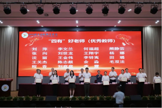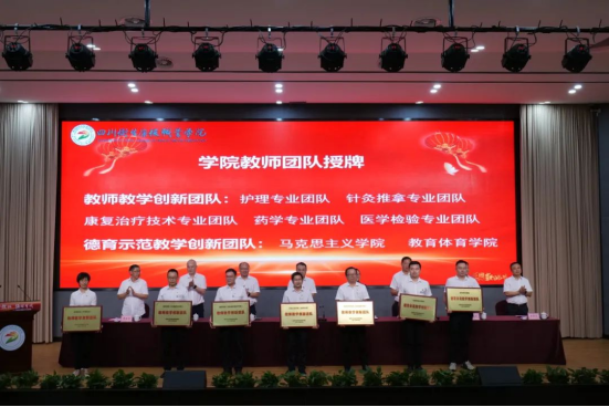 会上,2021级休闲体育1班官天华,康复学院党总支书记、副教授肖骞分别作为学生代表和教师代表发言。随后,市长石钢、副市长周耘、市级有关部门负责人和学院领导班子为“四有”好老师代表、省级教师教学能力大赛获奖教师颁奖,为教学创新团队、德育示范教学创新团队授牌。同时,会上还向“三十年”教龄教师和荣休教师致敬、献花。