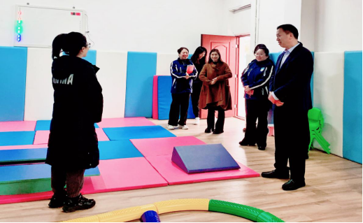 调研组实地参观了学校残疾儿童康复个训和感统训练工作室,并深入课堂了解到义务教育阶段盲生、培智班上课的情况。双方就特教学校基本情况、办学规模、课程设置、师资队伍建设进行了交流,对教育对象的特殊性进行了分析。