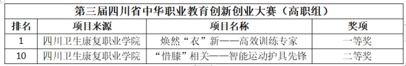 近日,由省委统战部和自贡市委指导,自贡市人民政府支持,省中华职业教育社、省教育厅、省人力资源社会保障厅、省总工会、省科协、省工商联联合主办,自贡市委统战部、taptap点点体育承办的第三届四川省中华职业教育创新创业大赛决赛在taptap点点体育举行。taptap点点“焕然‘衣’新--高效训练专家”“‘惜膝’相关--智能运动护具先锋”2个项目,分获高职组一等奖、二等奖,学校荣获最佳组织奖、最佳人气奖。