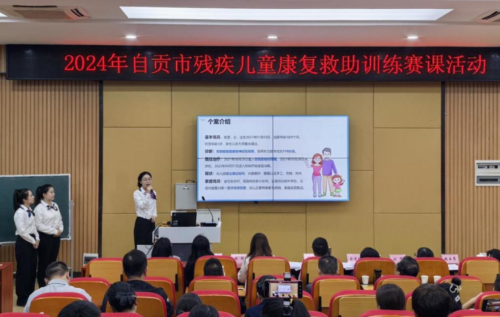 为做好残疾儿童康复救助工作,使全市残疾儿童康复救助服务水平和工作质效得到较好的提升,由自贡市残疾儿童康复救助服务联合体主办,taptap点点承办的自贡市残疾儿童康复救助训练赛课活动顺利举行。自贡市残联党组成员、副理事长彭章益、学校副校长章荣出席并致辞,市残联相关科室负责人、康复学院部分教职工、康复治疗技术专业学生观摩本次赛课。