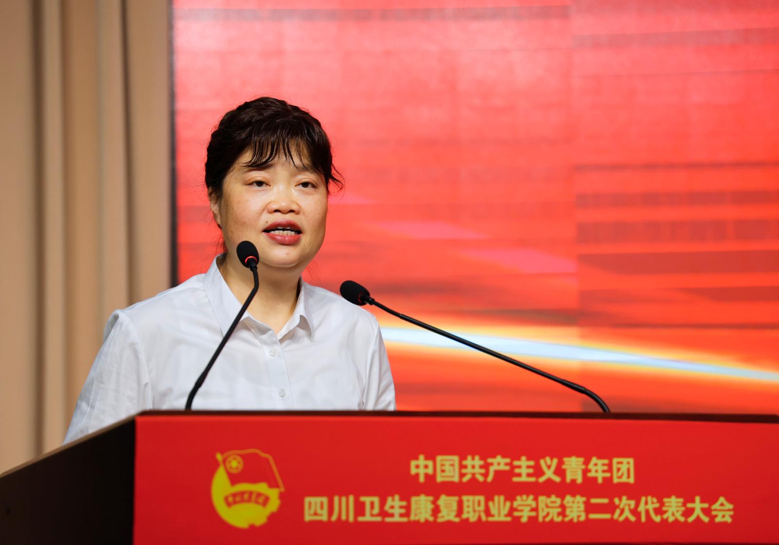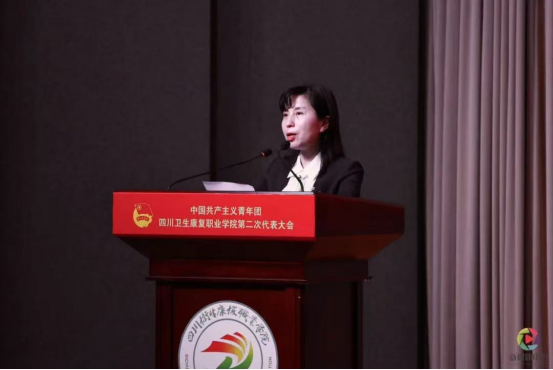 黄晓春强调,团代会是落实习近平总书记在庆祝中国共产主义青年团成立100周年大会上提出的“四个始终”和团干部“四个要”的具体实践和生动体现。她用三个关键词与师生共勉。一是奋斗。团组织要进一步提高政治站位,做习近平新时代中国特色社会主义思想的忠实实践者、忠诚维护者、坚定捍卫者;要进一步提升工作水平,千方百计为青年办实事、办好事、解难事;进一步深化自我革命,着力锤炼政治品格和优良作风。二是破圈。在引领力上“破圈”,把党的创新理论转化为喜闻乐见的青言青语;在服务力上“破圈”,带领广大青年在实践中学理论、悟原理、润初心;在执行力上“破圈”,将青春奋斗融入学校“新双高”建设和建成职业本科大学的宏伟蓝图。三是躬行,新一届的团委要加强政治建设和组织建设,当好学校党委的有力助手。新一届的团干部要高扬理想信念,抵制各种歪风邪气,坚决守好底线红线,矢志不渝追求高线。青年团员要勇于向创新、热爱、基层、传承去奔赴。以青春为笔,以时代为卷,书写属于川康、属于中国卫生健康事业的“新神话”。