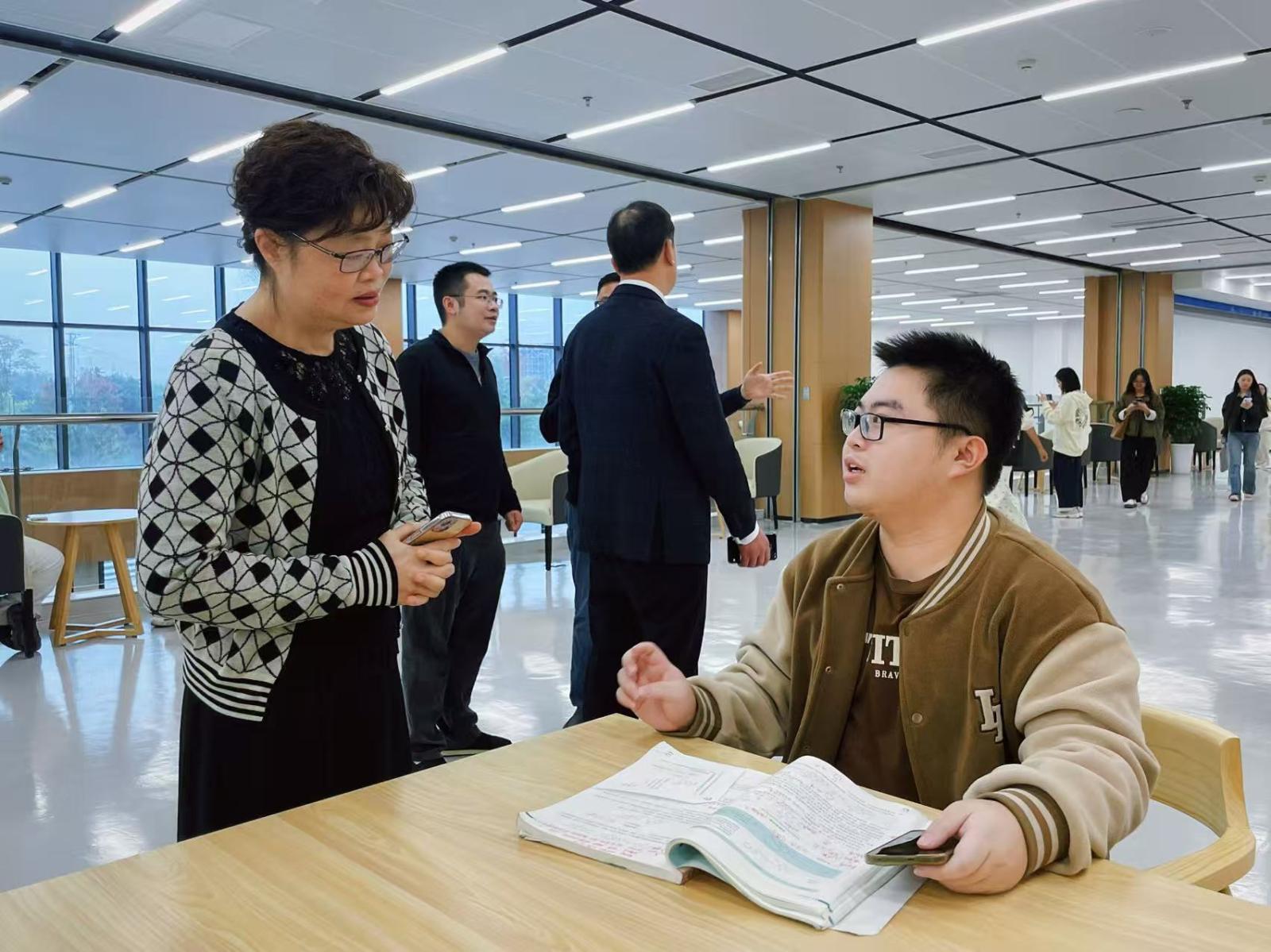 领导们查看了二楼空间布局、设施配置与智能化系统,测试空间预约、电子资源访问等功能,对新图书馆二楼的试开放表示充分肯定,并与同学们亲切交流,倾听他们对图书馆环境与服务的感受和建议。