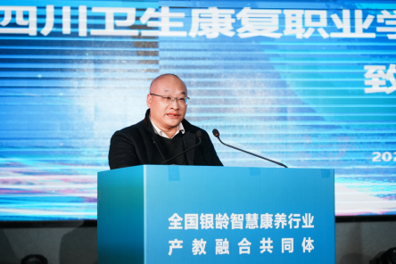 自贡市民政局党组成员、副局长黄艳峰代表自贡市民政局、市老龄委向共同体的成立表示祝贺,在讲话中深刻剖析自贡市银龄康养产业发展态势,并对共同体的发展提出三个期待:一是打造产教融合“新高地”,二是激活产业发展“新引擎”,三是搭建服务民生“新桥梁”。