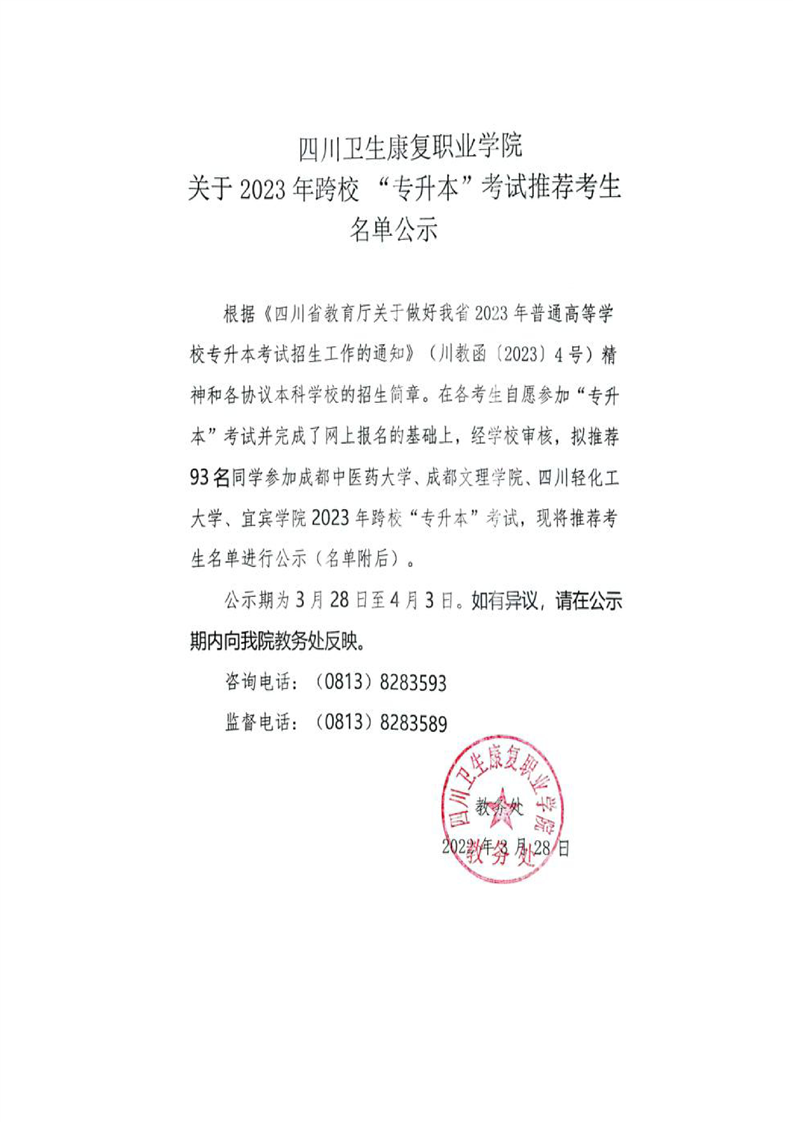 上一条:taptap点点体育关于2023年专升本推荐考生名单公示(西南医科大学)