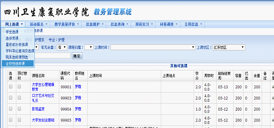 点击网上选课——全校性选修课