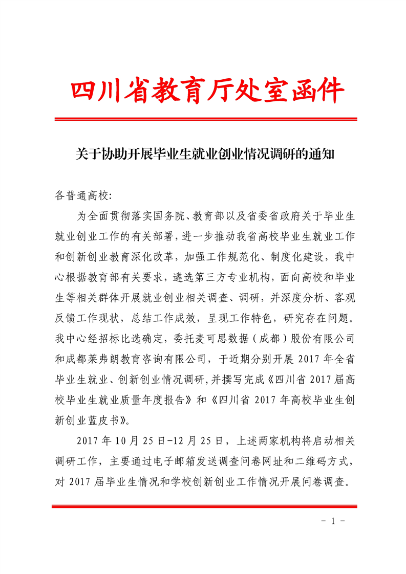 四川省2017年高校毕业生创新创业蓝皮书项目调查问卷