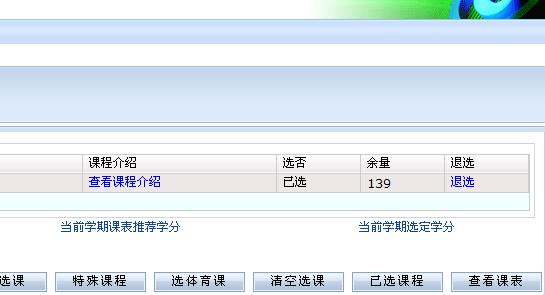(4)退选课程,点击选课界面中的已选课程查看——点击退选即可