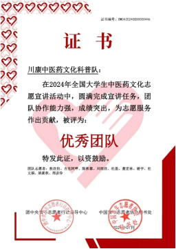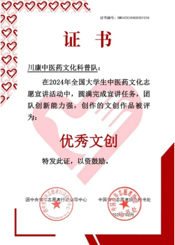 近日,taptap点点药品食品学院川康中医药文化科普队被团中央评选为“优秀团队”,团队创作的文创作品获评“优秀文创”。