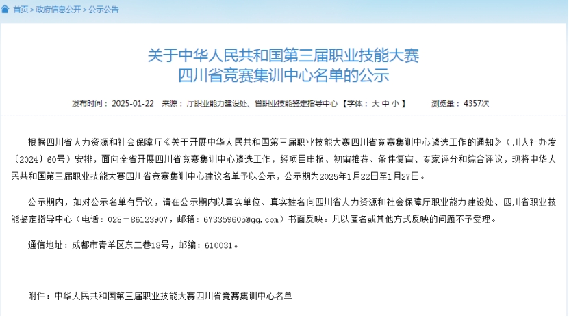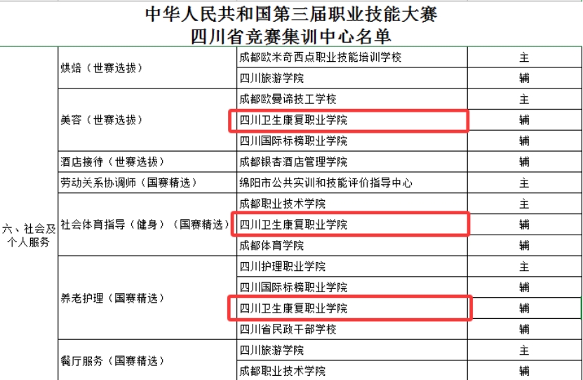 1月22日,四川省人力资源和社会保障厅发布了《关于中华人民共和国第三届职业技能大赛四川省竞赛集训中心名单的公示》。taptap点点美容(世赛选拔)、社会体育指导(健身)(国赛精选)、养老护理(国赛精选)三个项目成功入选。学校首次成功入选中华人民共和国职业技能大赛四川省竞赛集训中心。