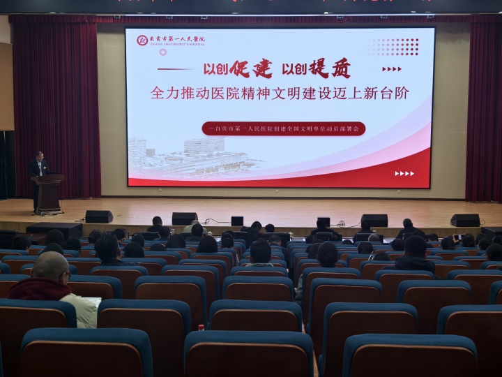为深入贯彻落实中央和省、市关于精神文明建设的各项决策部署,扎实推进全国文明单位创建工作,凝聚全院上下同心同德、真抓实干的强大合力,3月18日下午,医院在学术报告厅举行了创建全国文明单位动员部署会,全面部署创建重点任务、明晰层级责任分工、压实落地工作举措。医院领导班子成员、中层干部、各党支部书记等150余人参加。