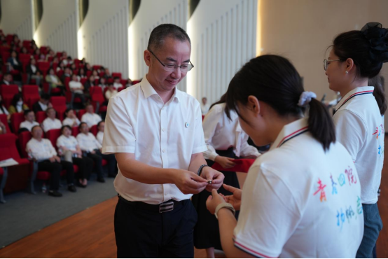 开班仪式上,党委书记章成对十名新员工代表授予院徽,并对全体新员工提出了三点期许。他希望新员工们要“以学为舟”,别怕“从零开始”,不断学习新知识、新技能,提升自己的专业水平;要“以仁为心”,别丢“医者初心”,始终把患者的利益放在首位,用爱心和耐心为患者服务;要“以廉为尺”,守住“底线红线”,严格遵守职业道德和法律法规,做到廉洁行医。