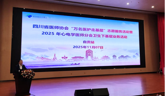 近日,由四川省医师协会心电学医师分会主办,市四医院承办的“2025年心电学医师分会卫生下基层业务活动自贡站”活动在市四医院南湖总院会议中心顺利召开。省心电分会会长秦地茂、市四医院副院长何昌国到会并致辞。