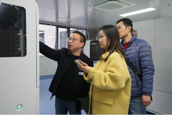12月12日上午,成都市第五人民医院副院长敖文英率队,来到自贡市第四人民医院参观交流,重点考察学习检验科智慧实验室的建设与管理经验。自贡市第四人民医院党委副书记、院长殷明刚及相关科室负责人陪同交流。