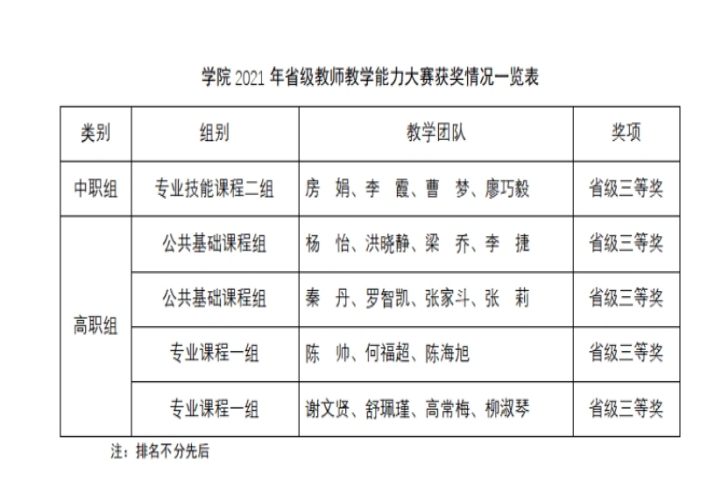 6月26日,四川省教育厅主办的2021年全省职业院校教师教学能力大赛顺利举办。基础医学部由(陈帅、何福超、陈海旭)(谢文贤、舒珮瑾、高常梅、柳淑琴)组成的两支教学团队都获得了省级三等奖。