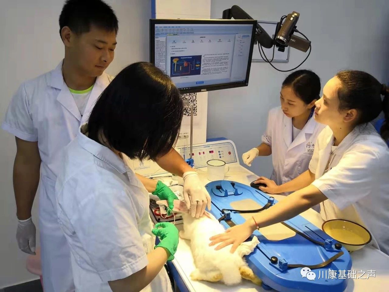 华西医学院以及泰盟公司,经验丰富的专家代表担任评委。比赛内容为机能实验课程中的《家兔动脉血压调节》分为理论、模拟和实验操作三部分组成(分别占10分、30分、60分)。在规定时间内完成网上理论知识答题和模拟操作以后,再在机能实验室进行实验部分的操作,从机能生物系统的应用,连接压力换能器、电刺激器等到动物的麻醉、以及干净利落不见血的手术操作、神经分离、动脉血管插管等整个实验流程都表现的相当完美,评委老师也感叹手术操作很熟练流畅,紧紧不到三十分钟就完成了本组比赛。