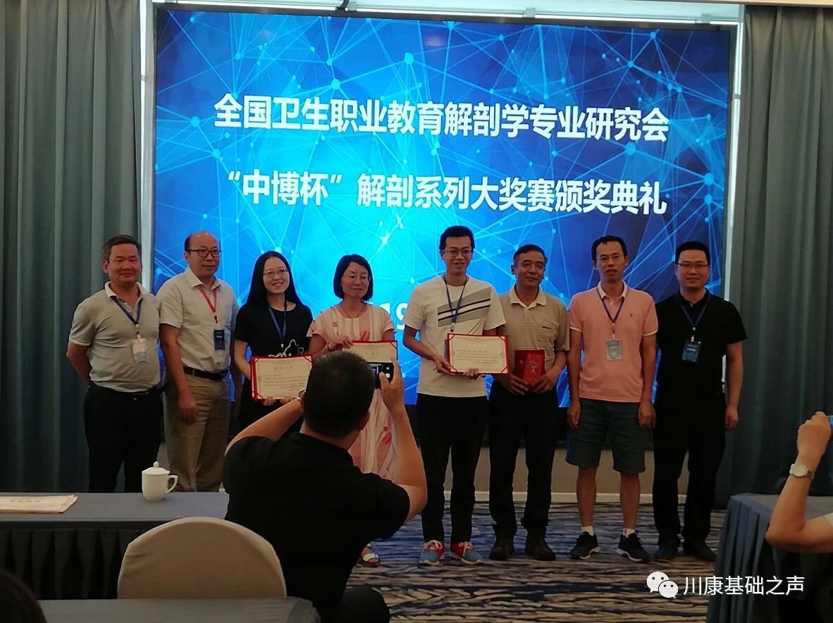 我院教师在7月26日-8月1日新疆昌吉召开的全国卫生职业教育解剖学专业研究会第十四届(2019)暨首届“中博杯”解剖学专业系列大奖赛中斩获佳绩!参加本次竞赛的教师团队由基础医学部教师谢文贤、毛双法、杨勇、陈帅、卢翠洁、刘霞、陈海旭、郭常英、刘玲、何福超和药学系教师李鹏杰、临床医学系教师林宇组成,经过激烈的角逐,最终斩获学术论文组二等奖1名,三等奖1名;微课组一等奖1名,二等奖1名,三等奖2名;解剖绘图组一等奖3名,二等奖1名,优秀奖1名,共计11项作品获奖。