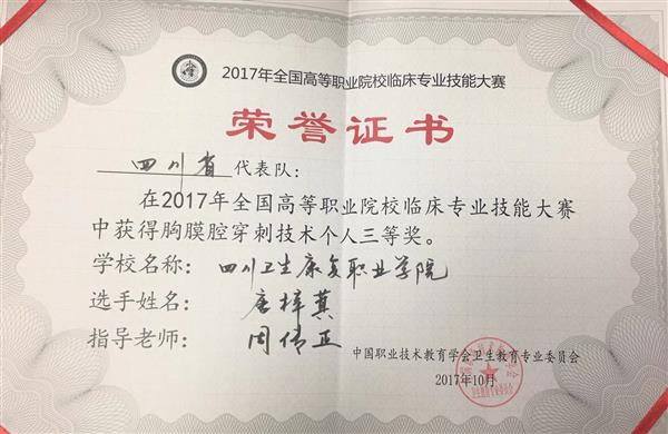 本次大赛由中国职业技术教育学会卫生教育专业委员会举办,赛事专业水准高、参赛队伍实力强,全国44所高职院校参加了比赛,我院是四川省代表队中唯一获奖单位。