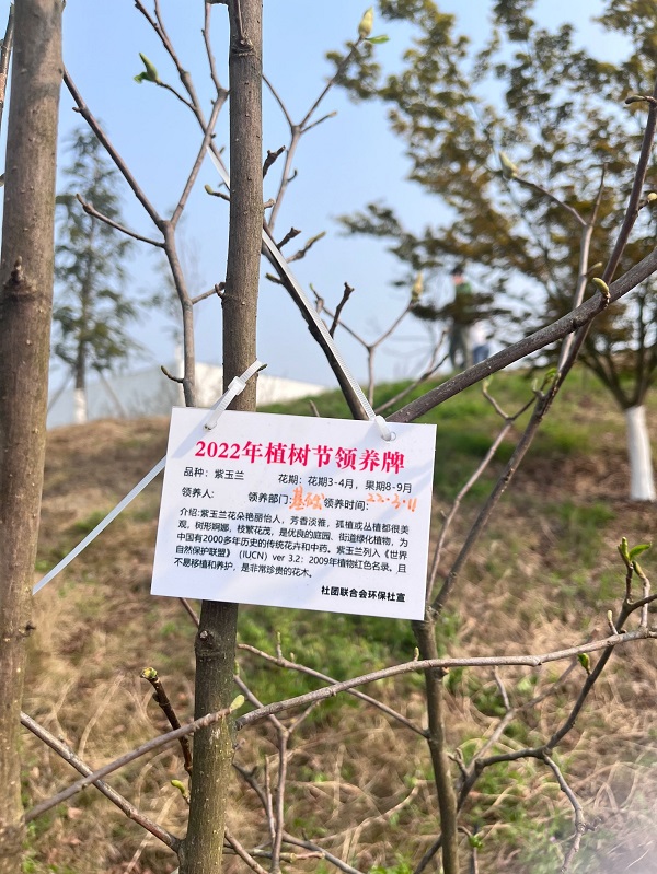 挖坑、埋苗、盖土、浇水……一系列操作下来大家都累得气喘吁吁。最终在大家通力配合下,基础医学部党支部成功栽植并认领了紫玉兰、日本红枫等4棵树。