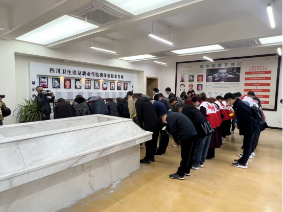 基础医学院自2014年至今接收遗体捐献共计23具,设有遗体告别室一间,做为亲人与遗体捐献者告别的场所。在清明节这里也成为了生者缅怀逝者、寄托哀思的心灵之桥。遗体捐献者们用生命最后的馈赠奉献给了医学教育事业。他们“生命虽逝”,但“精神长存”,他们是“人道、博爱、奉献”红十字精神的诠释者。