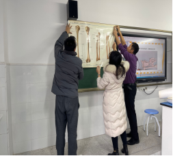 早在10月初,基础医学院党支部便已着手策划活动方案,该活动也得到了汇东实验学校南湖校区的生物学科董老师大力支持,双边通力合作,最终促成了本次活动。当天下午,基础医学院党支部教师们带着精心准备的挂图、上肢骨与关节模型等教具,提前到达汇东实验学校,与董老师一起布置生物实验室,为上好这堂拓展课做足了准备。