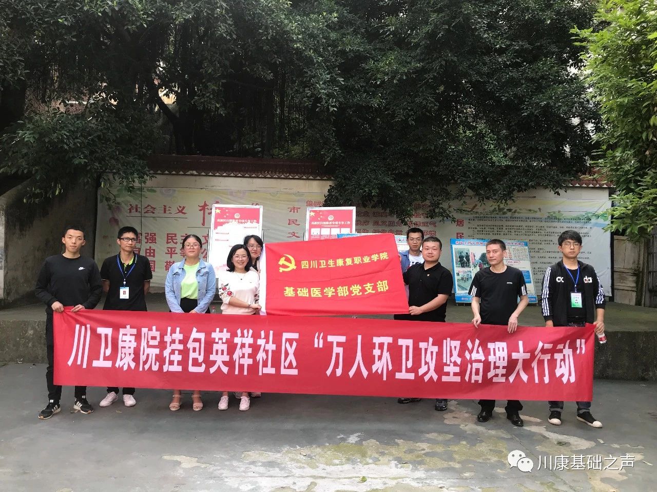 为响应自创卫指办【2019】22号文件,学校基础医学部于2019年5月22日在社区里开展了以打扫环境卫生为主题的党日活动。
