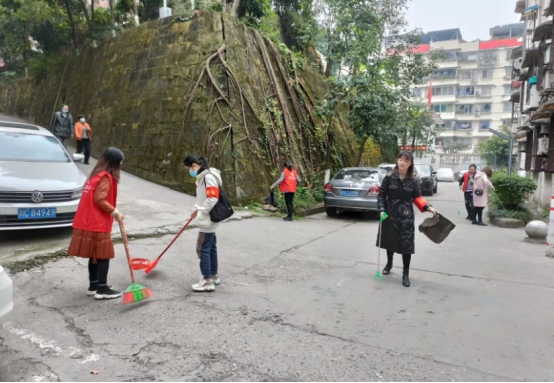 2021年12月3日基础医学部党支部组织党员教师前往自贡市英祥社区参与志愿服务,在社区工作人员的指引下,党员教师身着志愿者马甲,臂挂志愿者袖章,在英祥社区开展环境卫生整治志愿服务,重点清理主要街道路面、绿化带、树池的各类垃圾(烟头、纸屑、果皮等)。