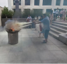 本次培训分为两个阶段:第一阶段为安全知识培训,结束后组织全员考核,90分以上为合格;第二阶段为实地演练,特邀学校保卫处翁强、樊芸杰老师现场指导。保卫处提前筹备演练物资,详细讲解消防安全知识及消防器材的正确使用方法。在室外实操环节,教职员工两人一组,分别使用干粉灭火器和灭火毯进行明火扑灭演练。整个演习过程井然有序,参与人员反馈收获显著,有效提升了实战能力。