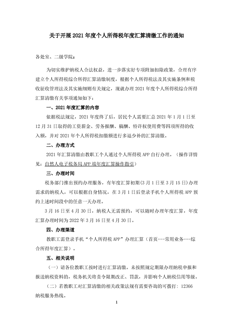 关于开展2021年度个人所得税年度汇算清缴工作的通知