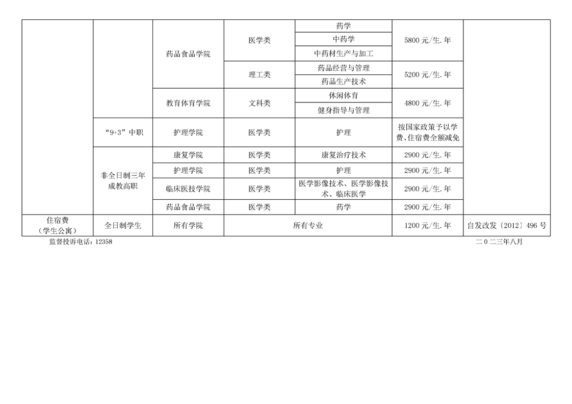 taptap点点体育2023年秋季学年教育收费标准