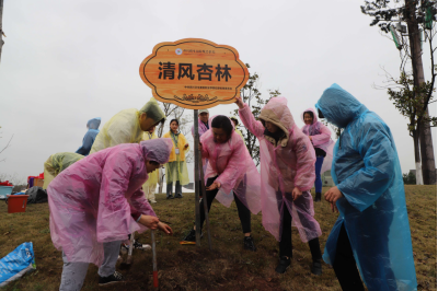 迎着春雨,伴着微风,迈着青春的步伐向着“清风杏林”出发。挖树坑、栽种、填土、施肥、浇水,在老师和同学们的共同努力下,一棵棵树苗稳稳扎根、整齐排列、迎风而立、充满生机。