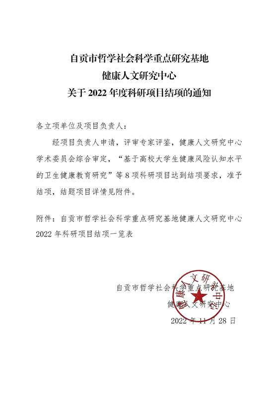 健康人文研究中心关于2022年度科研项目结项的通知