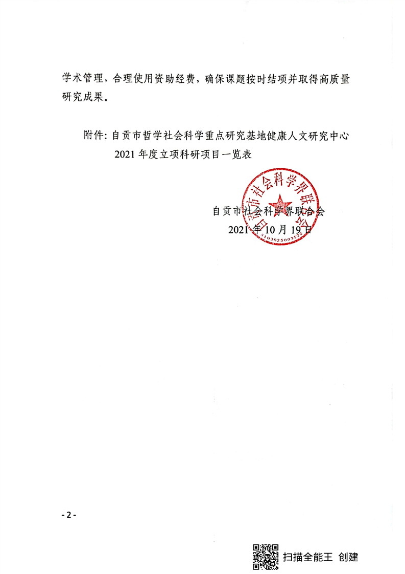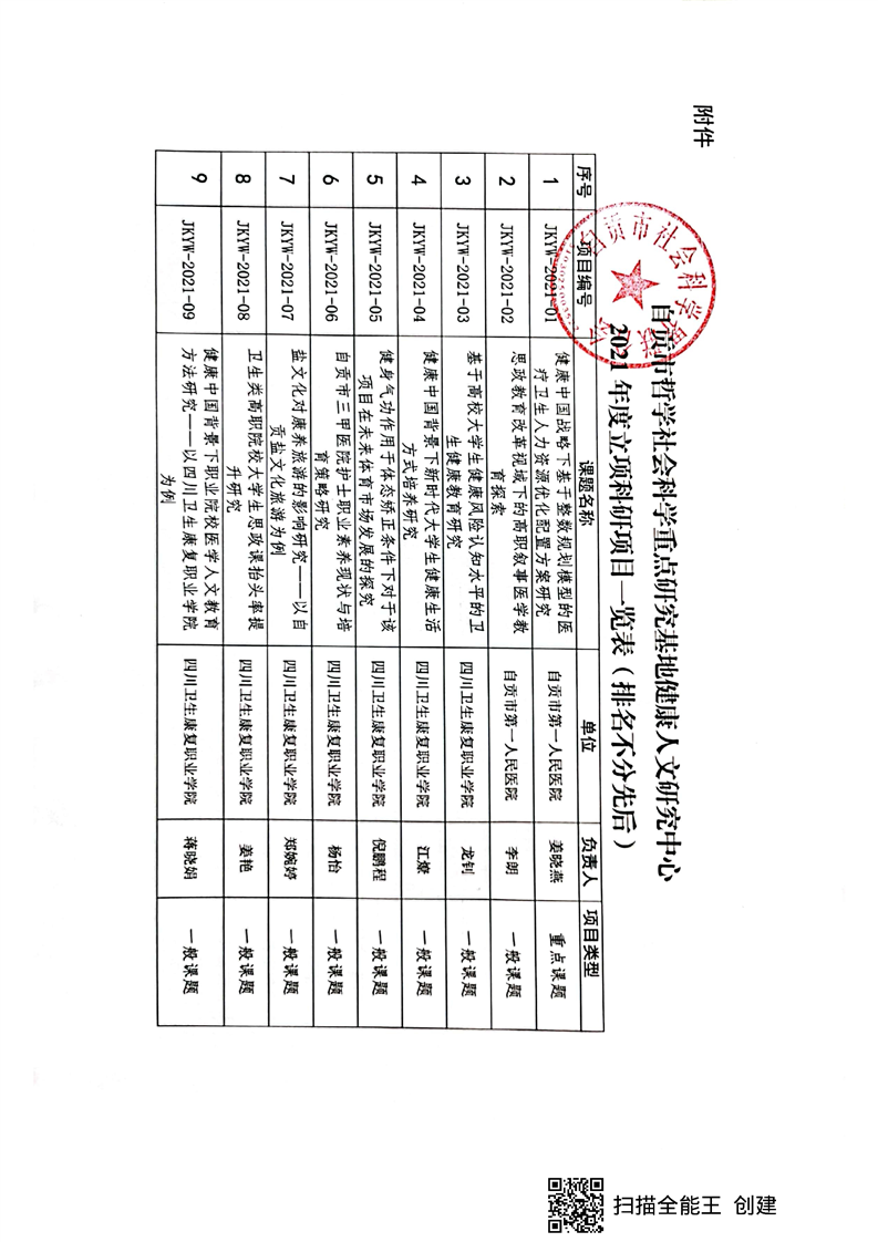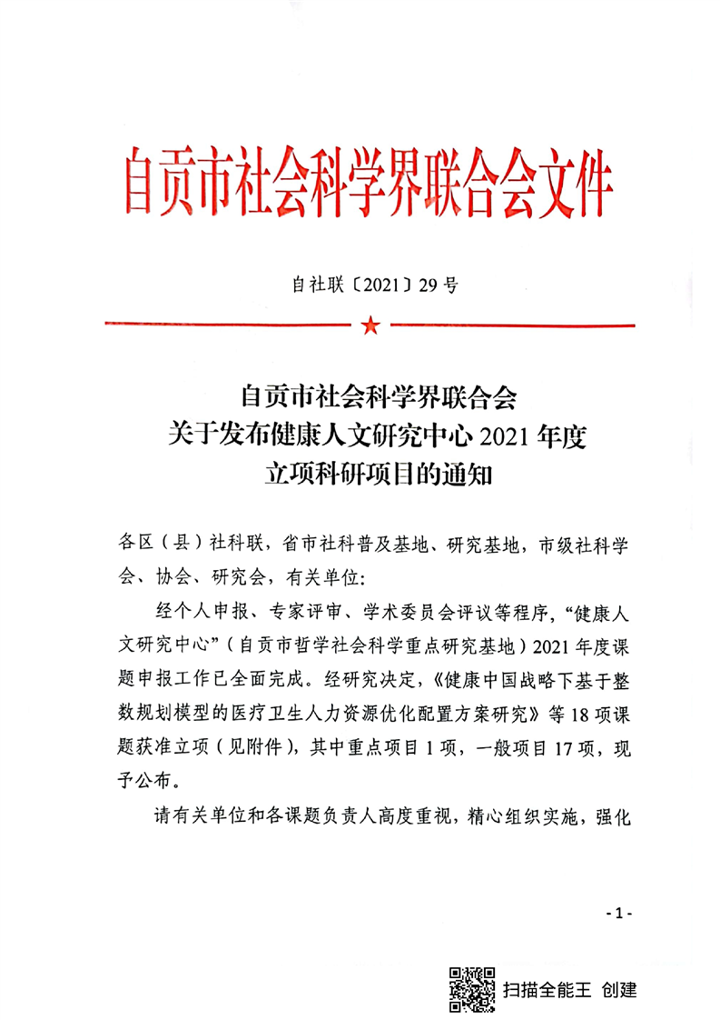 关于发布健康人文研究中心2021年立项科研项目的通知