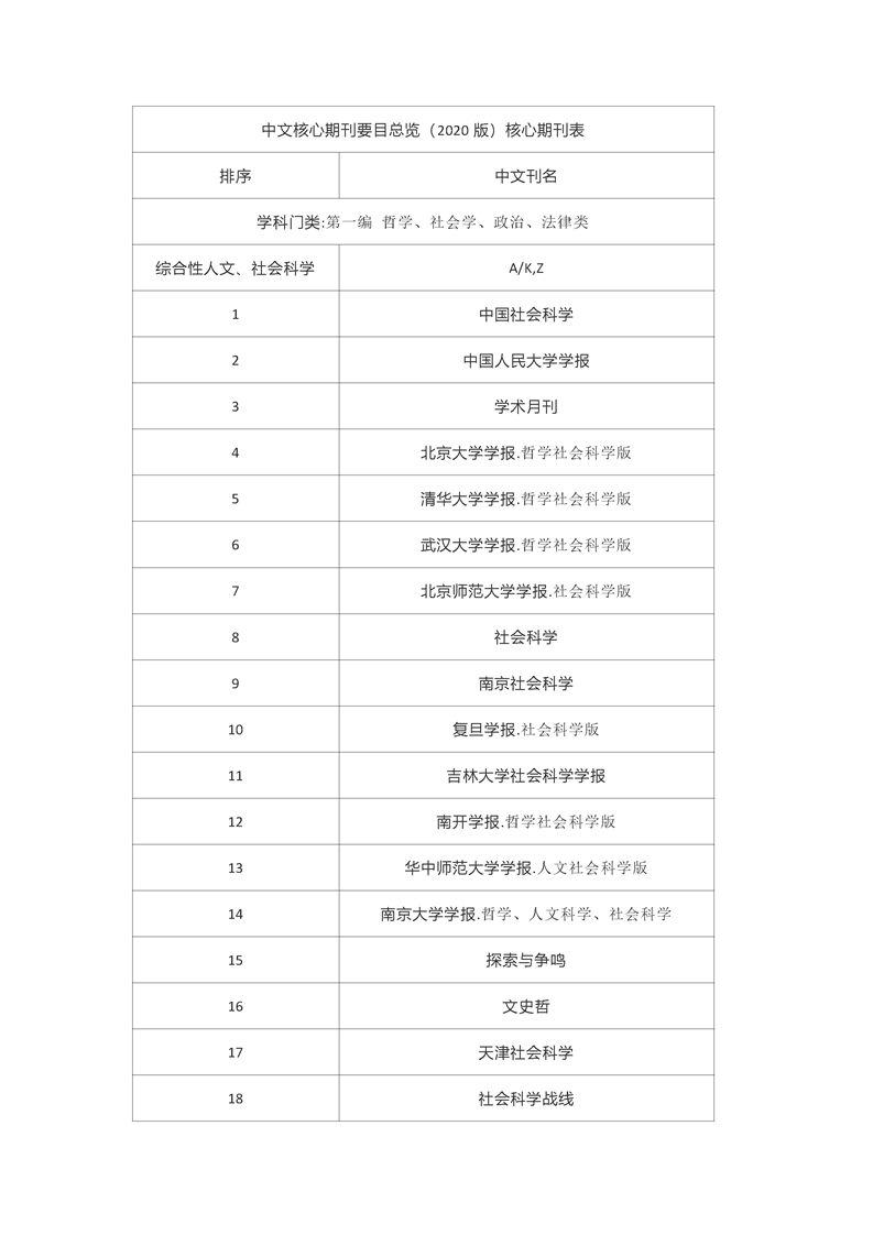 2020版中文核心期刊要目总览