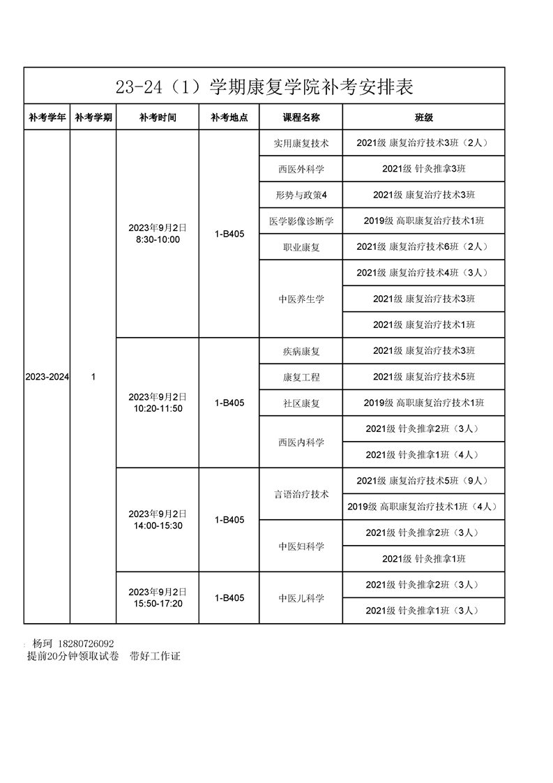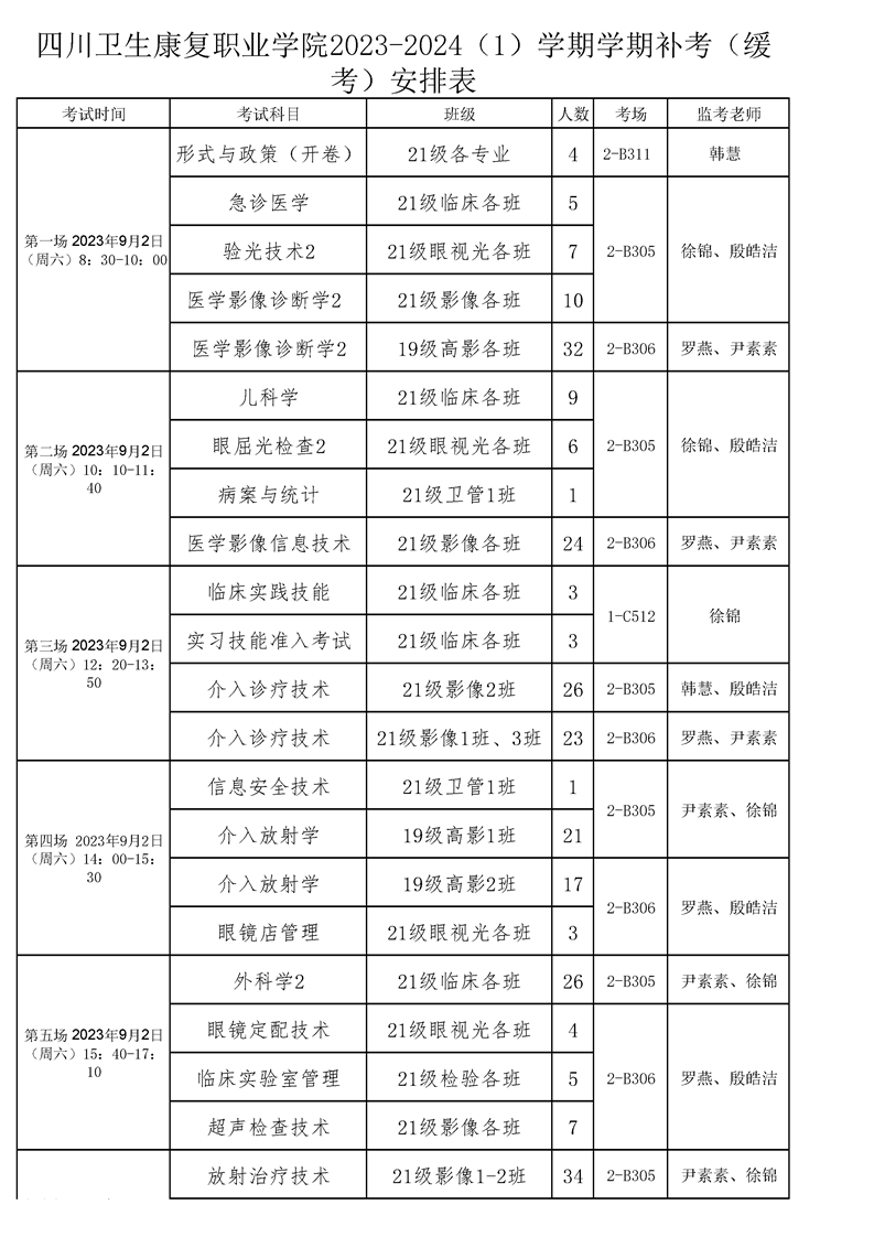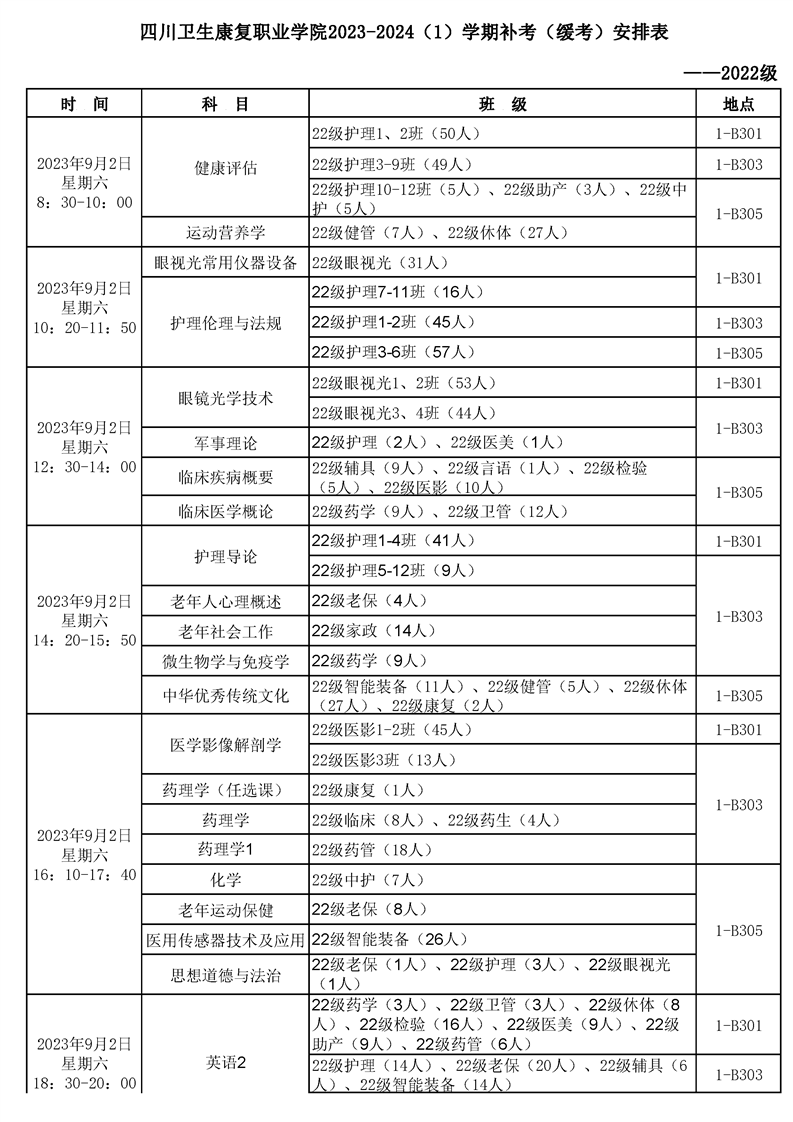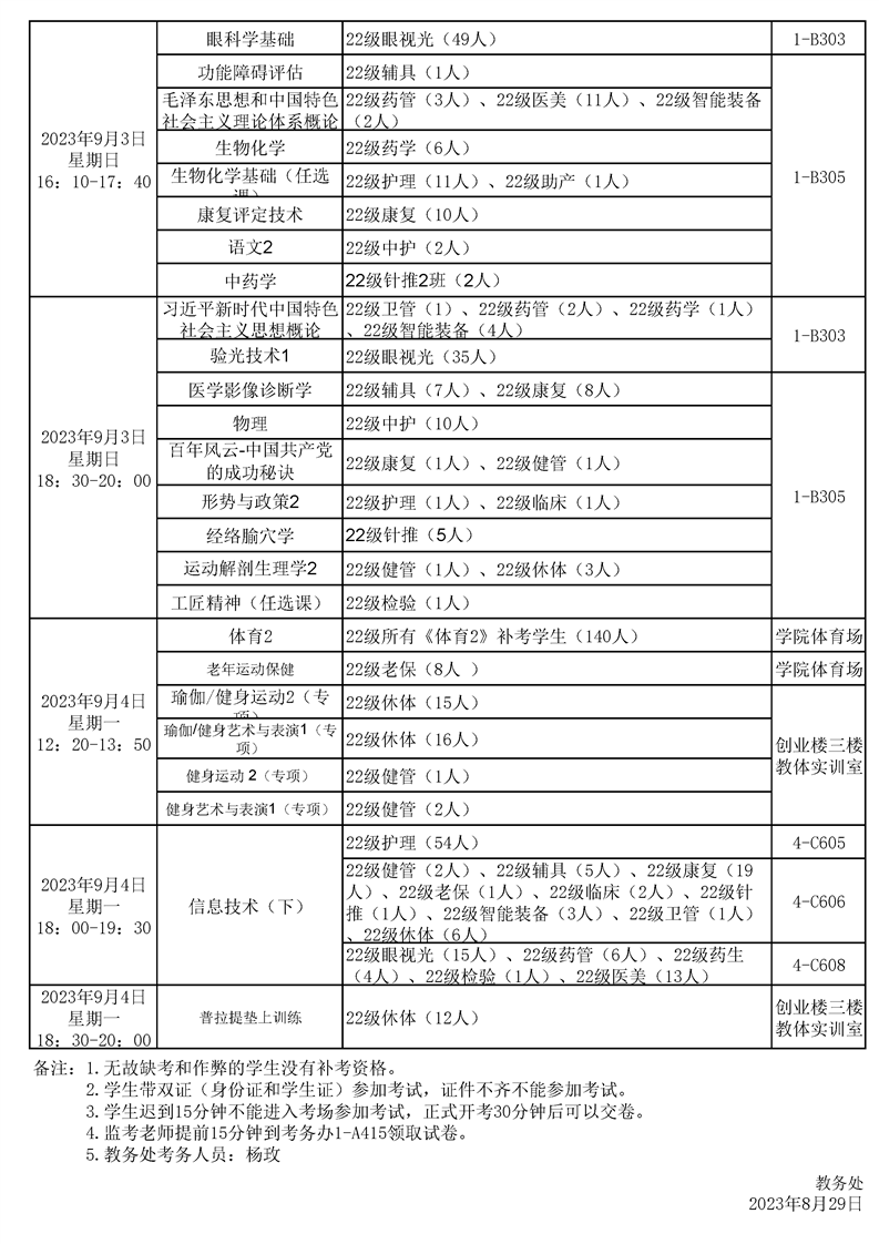 taptap点点体育2023-2024(1)学期补考(缓考)安排表