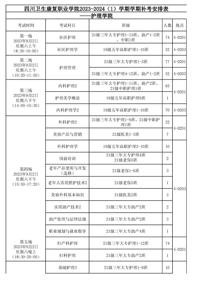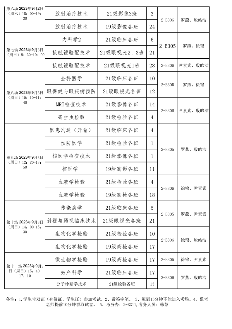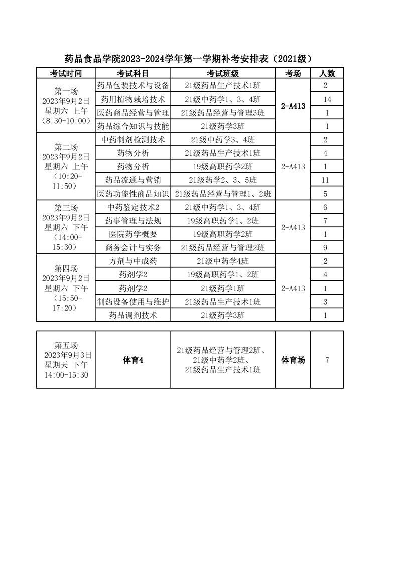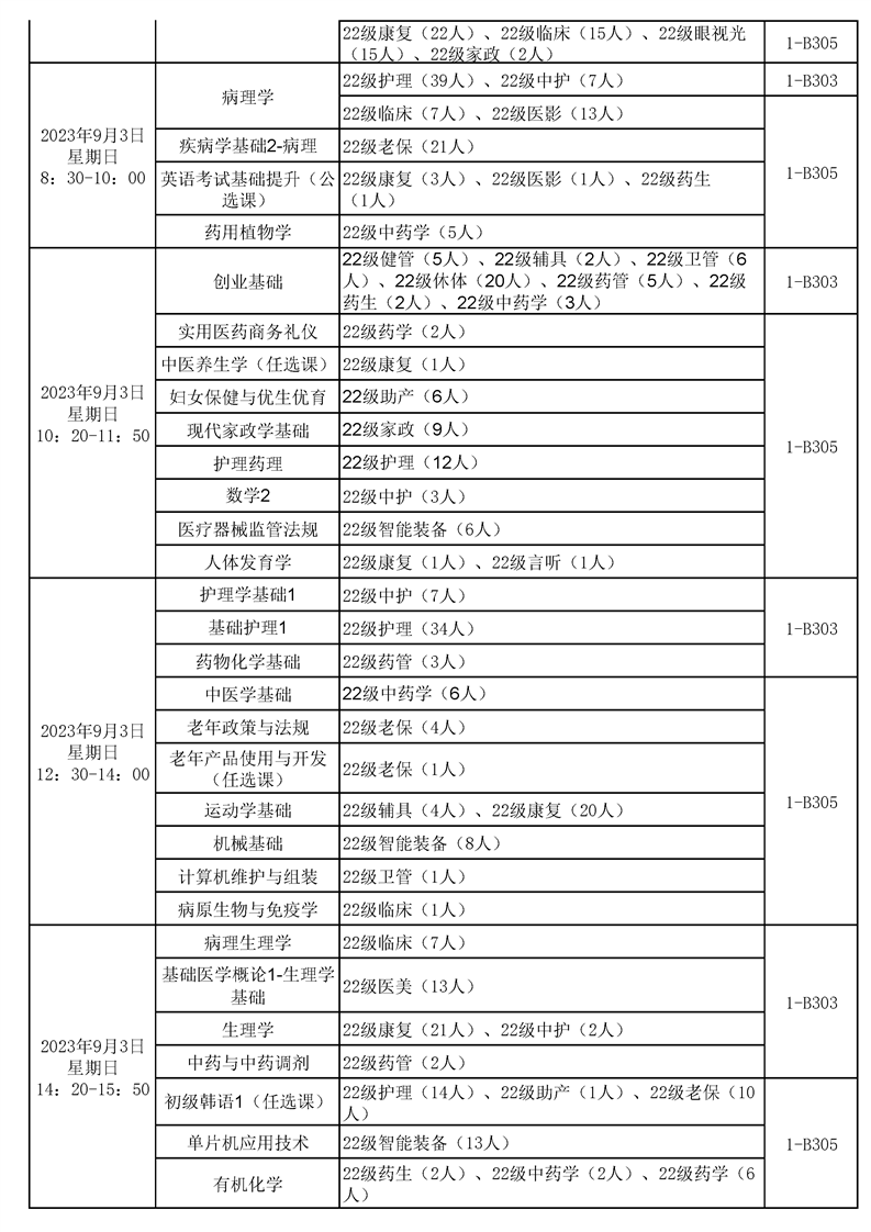 taptap点点体育2023-2024(1)学期补考(缓考)安排表