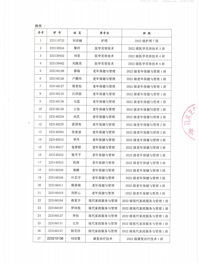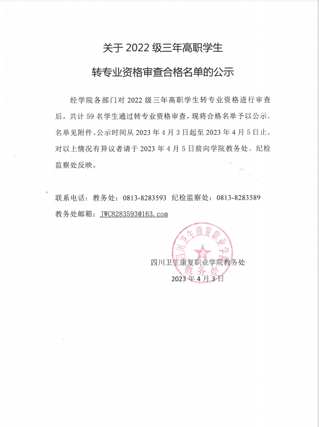 关于2022级三年高职学生转专业资格审查合格名单的公示