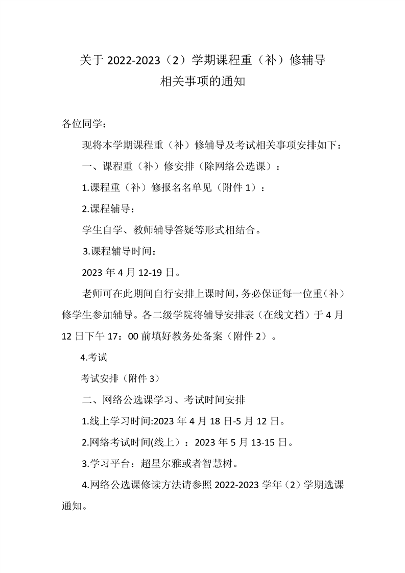 关于2022-2023(2)学期课程重(补)修辅导 相关事项的通知