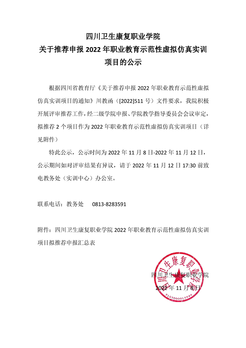 关于推荐申报2022年职业教育示范性虚拟仿真实训室项目的公示