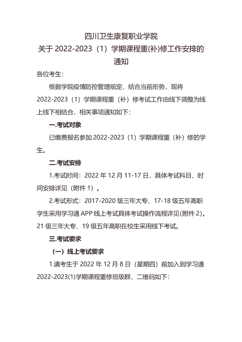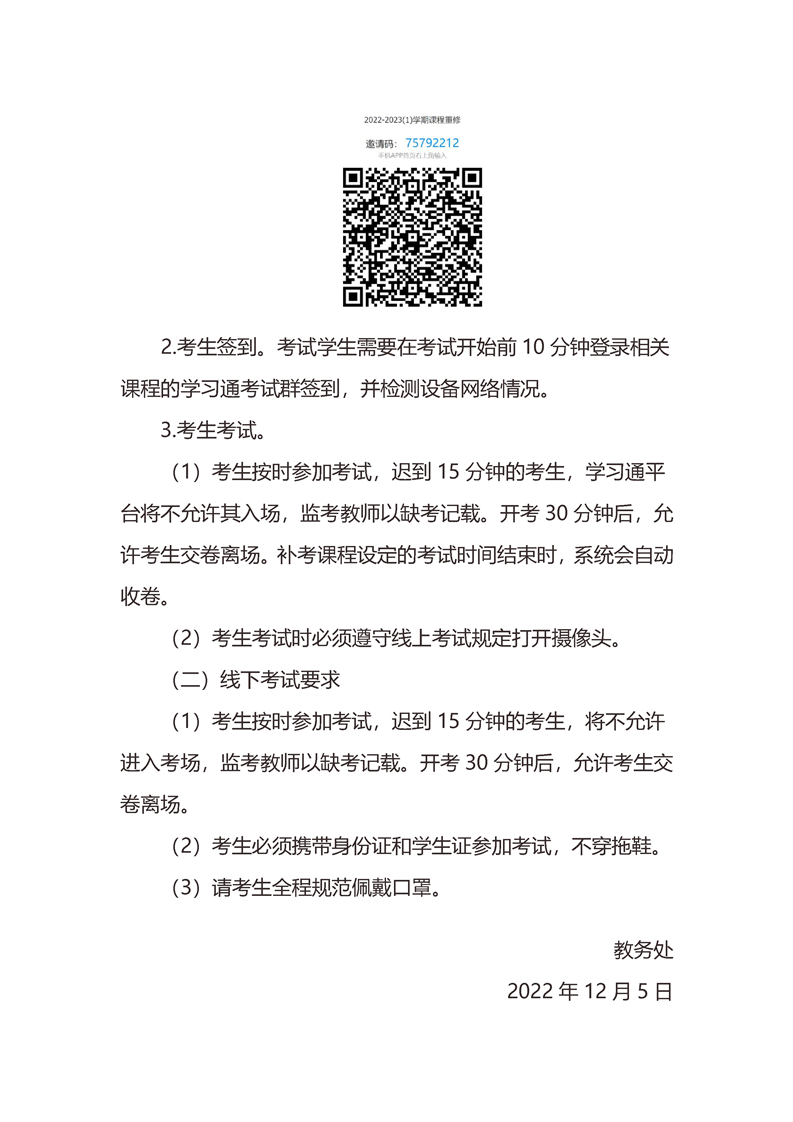 关于2022-2023(1)学期课程重(补)修工作安排的通知