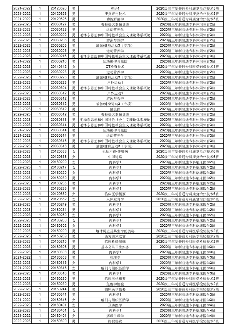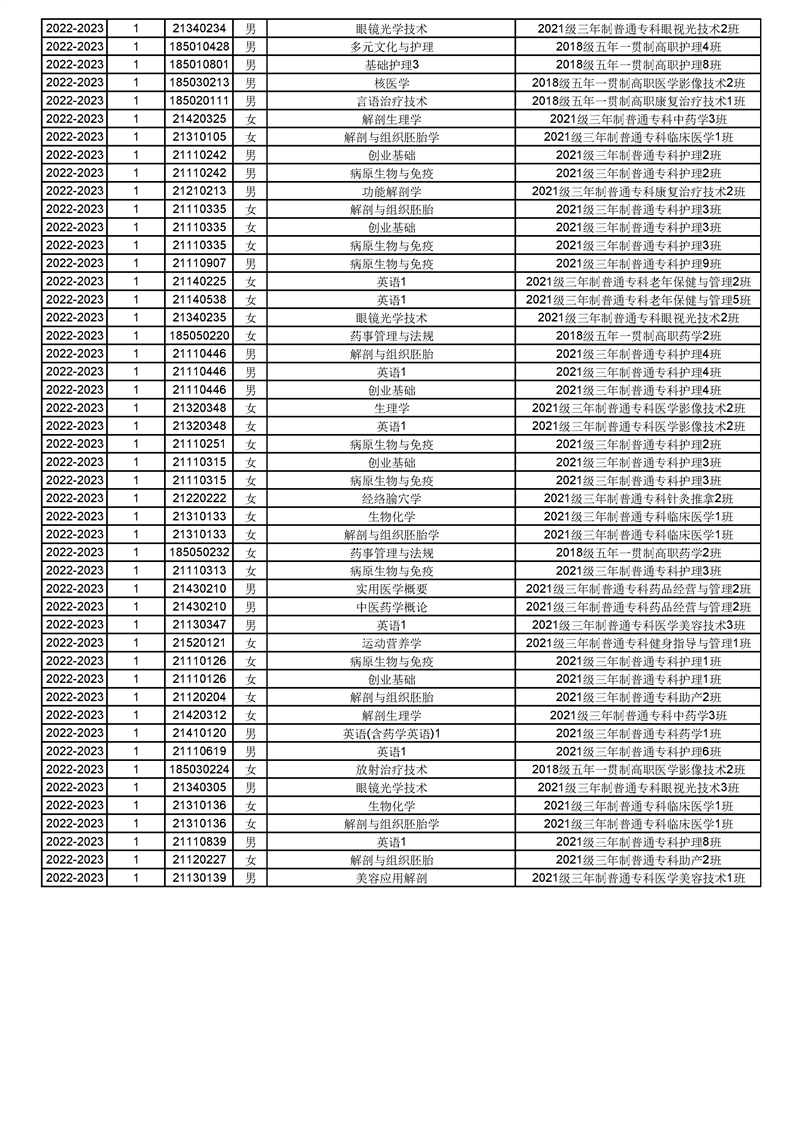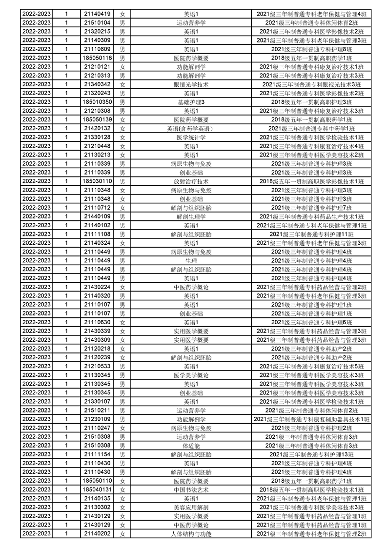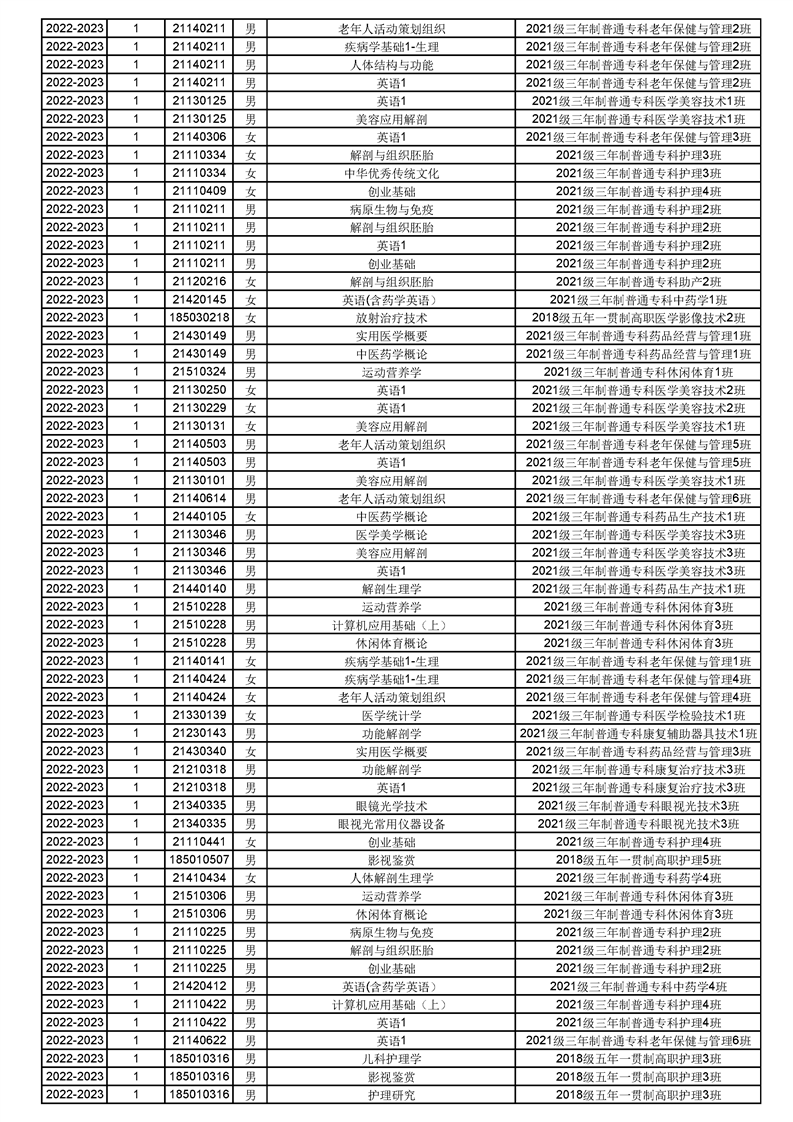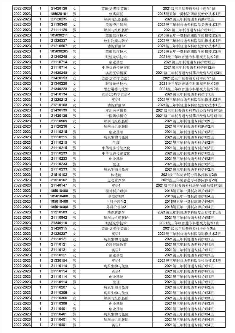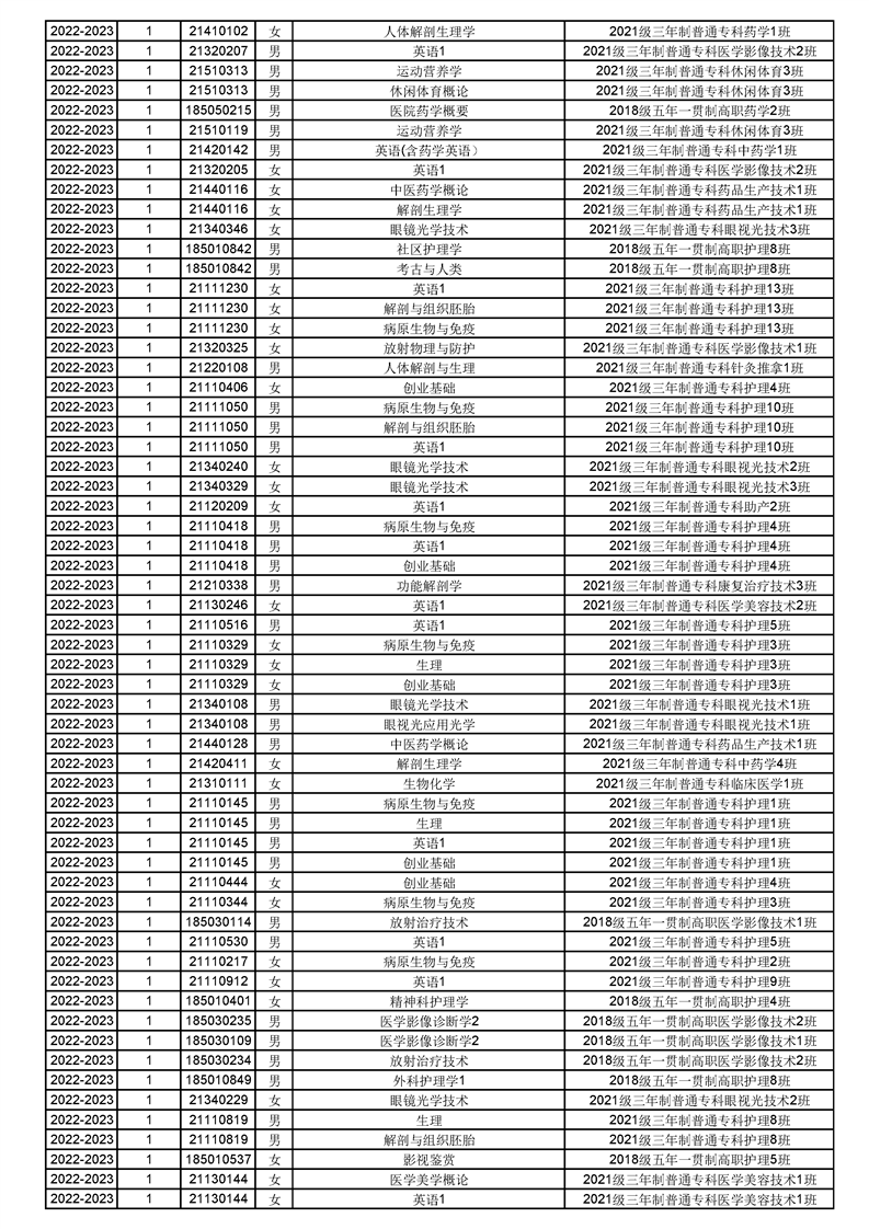 taptap点点体育2022-2023(1)学期课程重修名单