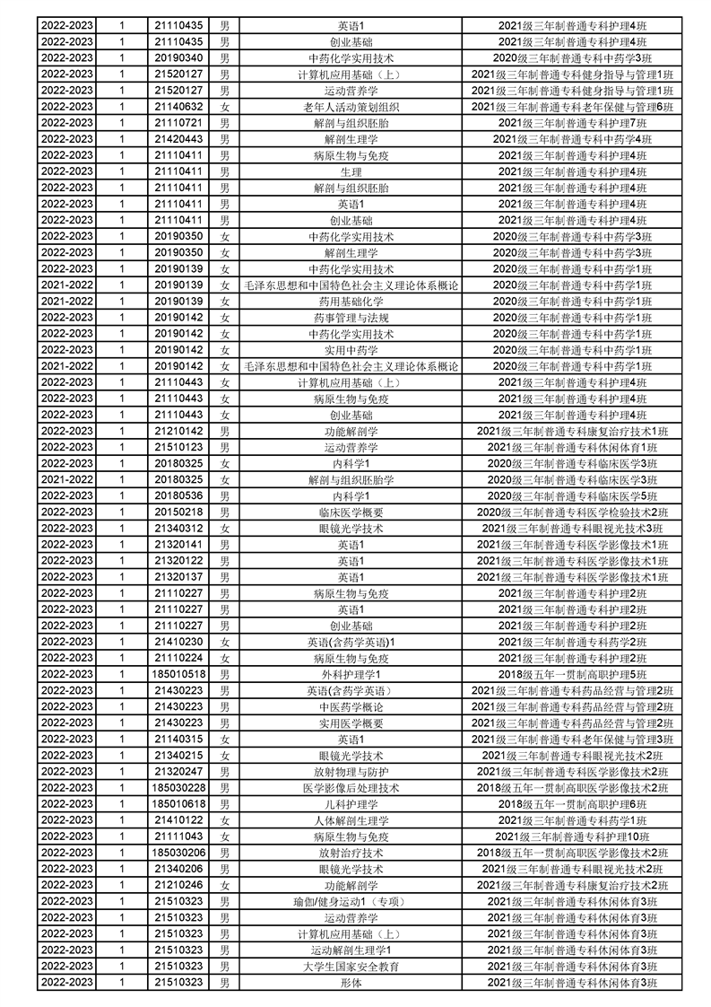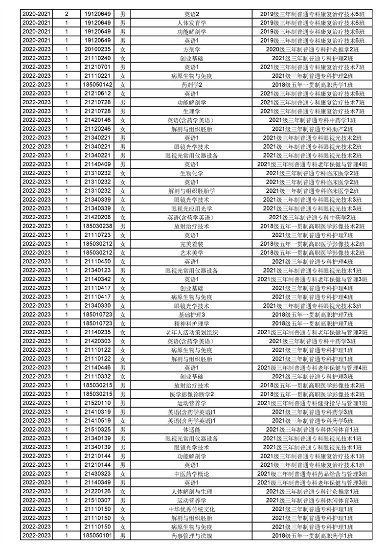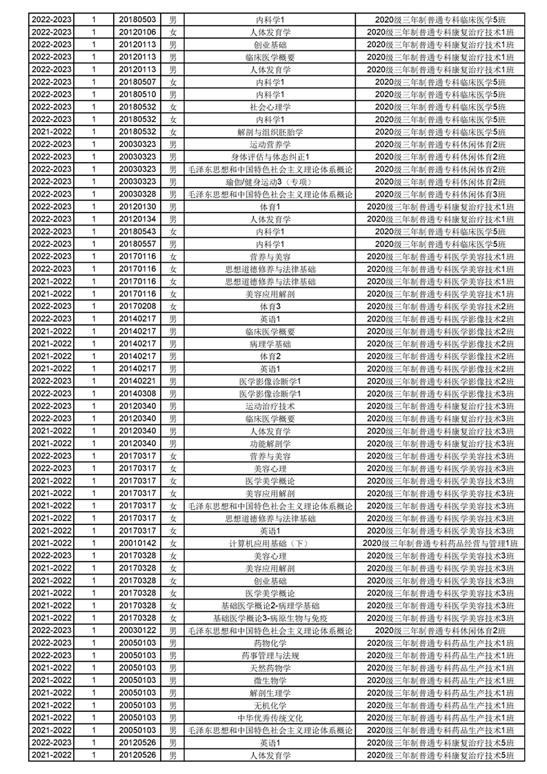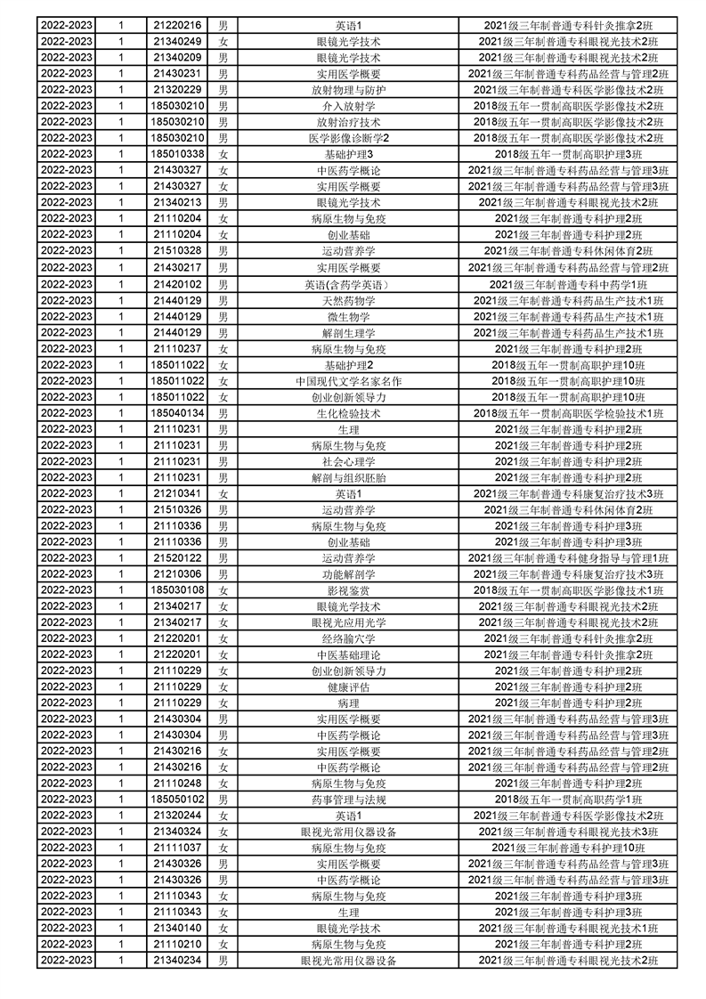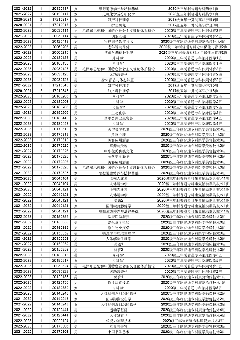 taptap点点体育2022-2023(1)学期课程重修名单